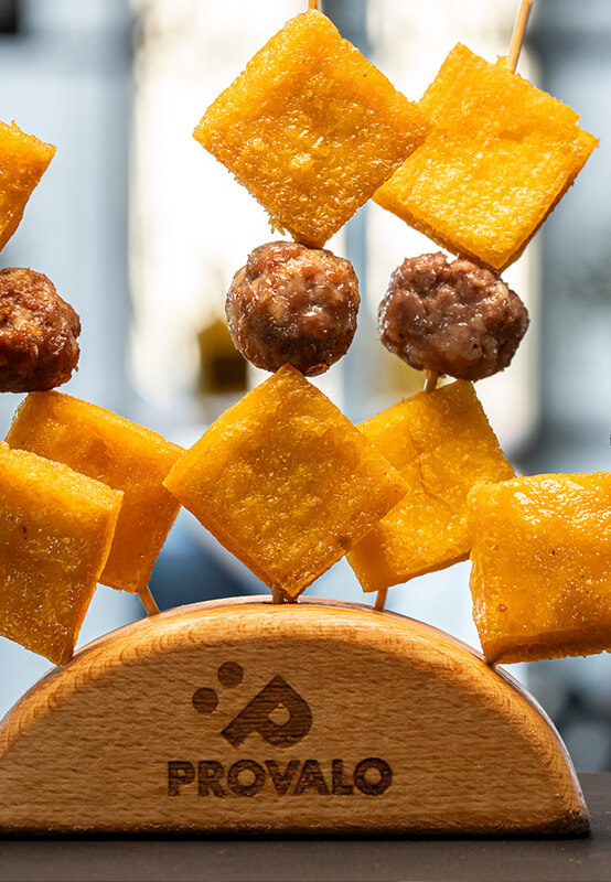 Da Provalo, ogni pietanza si trasforma in spiedino: una formula semplice, conviviale, sorprendente. Il tavolo diventa centro, la brace accende i sapori, e il gusto prende forma… spiedino dopo spiedino.
